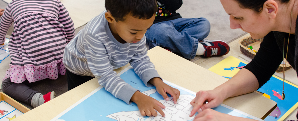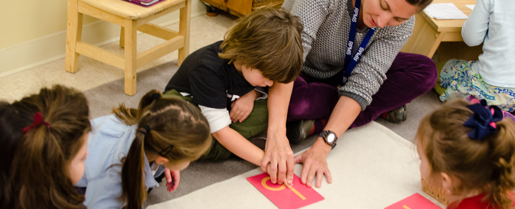 the adult | The role of the teacher is to act as a facilitator, connecting the child to the materials and activities in the classroom. The teacher prepares the physical environment and provides the necessary guidance and instruction so students can work independently, progress in their work, and thrive socially and emotionally. Lessons are presented individually or in small groups. The teacher monitors progress through observations and frequent interaction. At the elementary level, teachershave regular conferences with children and regularly review their daily/weekly work. The teacher actively ensures the safety of the children through mutually understood ground rules that emphasize respect for the individual and the environment. "A teacher's task is not to talk but to prepare and arrange a series of motives for cultural activity in a special environment made for the child." -Maria Montessori |