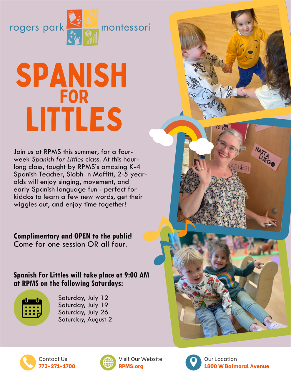Spanish for Littles is designed with 2-5 year olds in mind. All sessions start at 9:00am at RPMS. Space is limited for this series - claim your spot now!